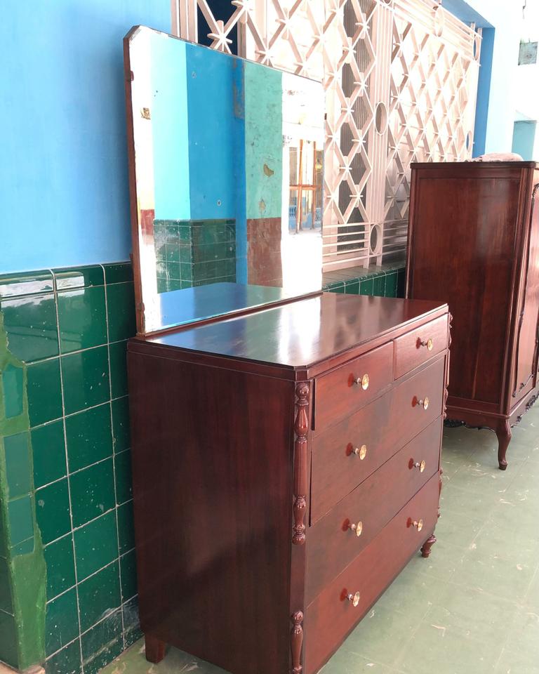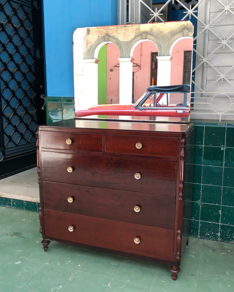 Cómoda estilo Colonial recién restaurada. Con su espejo original y cinco gavetas amplias.