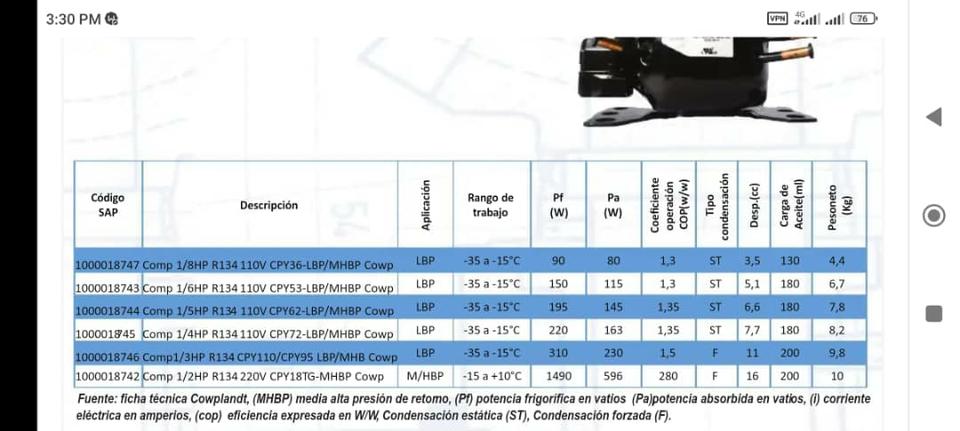 MÁQUINA DE FRÍO COWPLANDT 1/3HP 110V 60Hz R-134a NUEVA. - $130