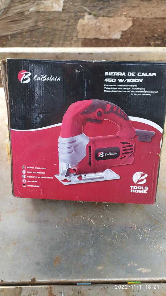 Se vende una sierra caladora de uso marca BOLATA, es una sierra de calar manual, tiene una potencia de 450w, se alimenta con una tensión de 220v, tiene una velocidad del motor de 3000rpm y tiene una capacidad de corte en madera y plásticos de 55 a 65mm y en acero de 6 a 8mm. Posee además tres juegos de cuchillas de repuesto nuevas sin estrenar. Cada juego de cuchillas o hojas de sierra tiene incluido 3 hojas de sierra para madera, 3 hojas de sierra para plásticos y 3 hojas de sierras para acero o metal. La sierra casi no se ha usado se puede decir que esta nueva y las cuchillas de repuesto están en su paquete. Si necesitas una sierra caladora manual, para realizar costes precisos en madera o en chapas de metal, puede que esta sea tu mejor opción. Tiene un valor de 5000cup.