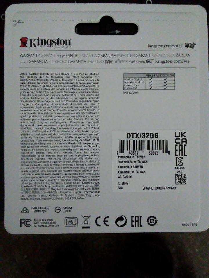 NEW flash kingstnon de 32 gB a 3.0 - $700