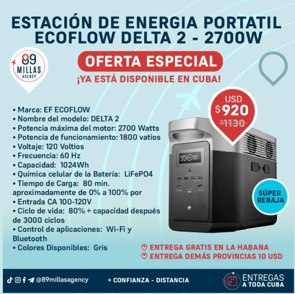 * Energía portátil EcoFlow: DELTA 2 (2700W – 920 USD), RIVER 2 Pro (1000W – 650 USD).
