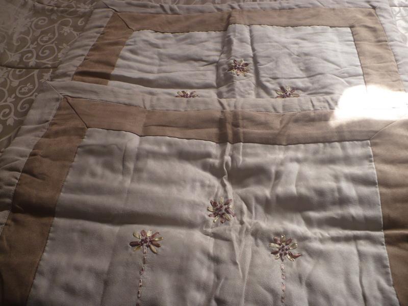 Cubrecama color beige bordada y también las fundas para almohadas. Sin uso.